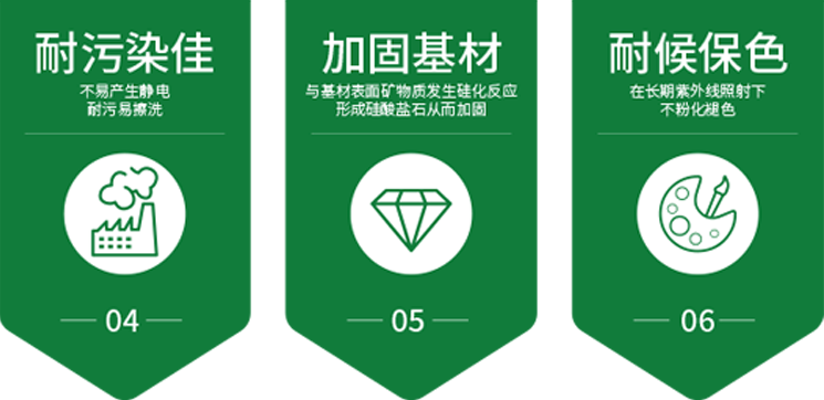 弗克風(fēng)?硅質(zhì)漆是單組分的水性無機(jī)涂料,采用無機(jī)硅酸鹽高分子復(fù)合技術(shù),優(yōu)選特種硅酸鹽材料、改性助劑,突破性地解決了乳膠漆耐黃變差、耐污性差、壽命短的缺點(diǎn), 具有高耐候性和耐火性的健康型涂料特點(diǎn)。